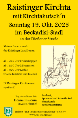Am Sonntag, den 19. Oktober feiert der Heimat- und Trachtenverein Raisting-Sölb zum 29. Mal Kirchta und lädt alle ein mitzufeiern.